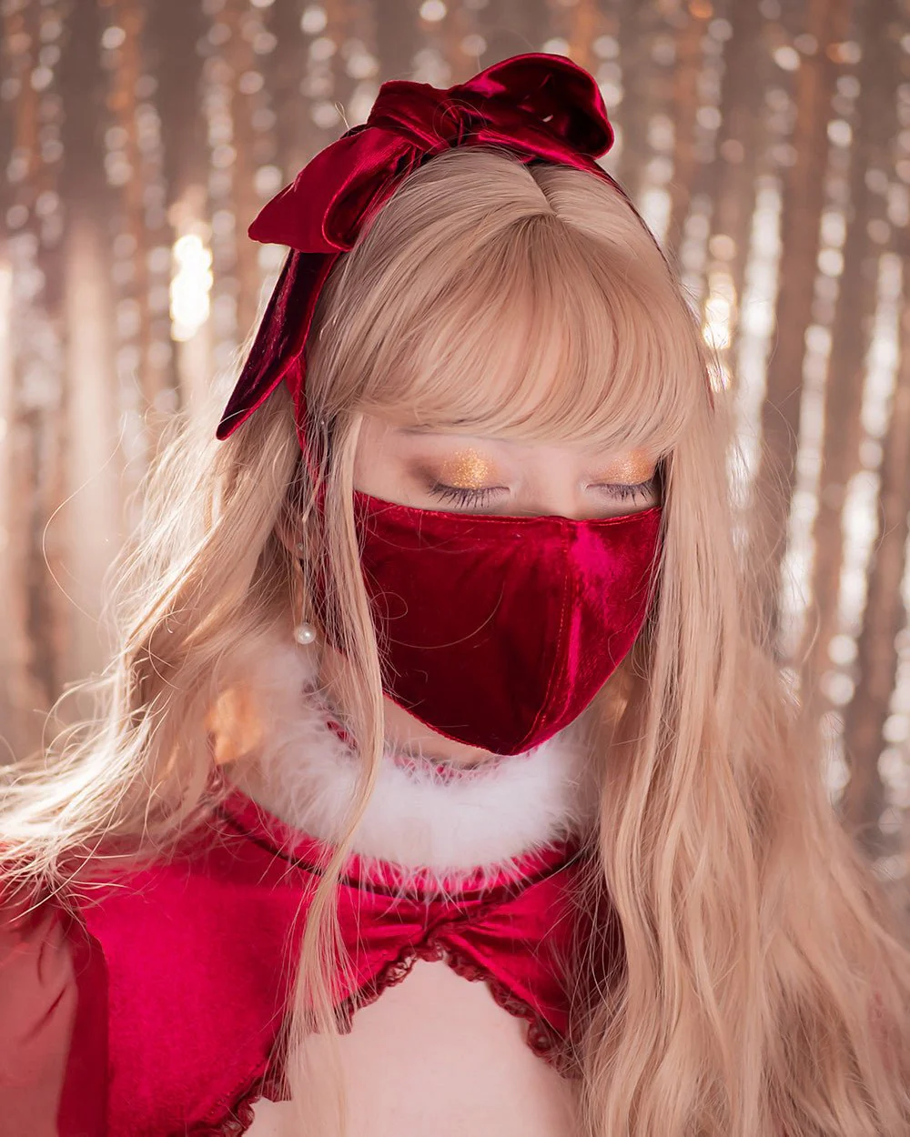 -70%Burgundy Velvet Bow Face Mask—